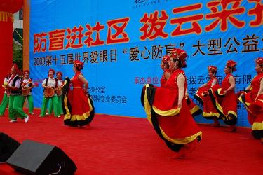 关爱老年人的眼健康就成为这次大型公益活动的主题。以社区老年人健康快乐生活为主题的世界爱眼日老拨云堂“爱心防盲”大型社区歌舞比赛借世界爱眼日的宣传走进社区,受到了逾千名老年人的热情参与,在5月26日和6月1日的两场选拔赛中,我市的老年歌舞队的老年人尽情地展示着他们的健康、乐观、积极向上的生活态度。参赛团队100余个,获奖的22个团队在6月6日南屏广场展演,象征6月6日的660人的老年人腰鼓队将现场气氛推向高潮,拨云锭的第十代传人70岁老人沈永纲老先生也到现场助兴,沈老先生他们用十代人的心血为普罗大众的眼健康不懈的努力着。