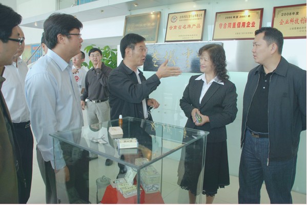 和副省长与省市领导在董事长殷亦坚先生,总经理文晖女士陪同下视察了老拨云堂文化陈列馆,听取了殷亦坚董事长的汇报。和副省长一边听取汇报一边询问公司的发展情况,对老拨云堂厚重的中药历史文化以及名牌产品---拨云锭、彝药紫灯胶囊、老牌名药普乐安进行了详细的了解之后,对公司发展做出了重要指示。
