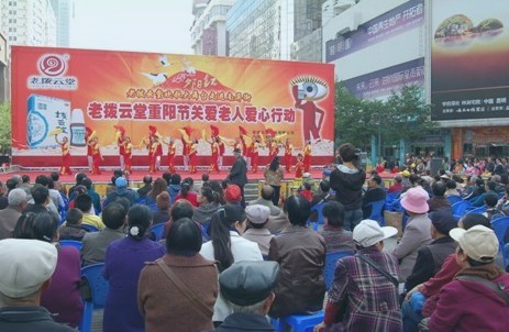 重阳节来临之际,老拨云堂欢歌大舞台作为昆明市五华区第24届敬老节的分会场于2010年10月16日走进昆明南屏街,给老年人送去爱心,带来欢乐。成为敬老节当天一道独特的风景。