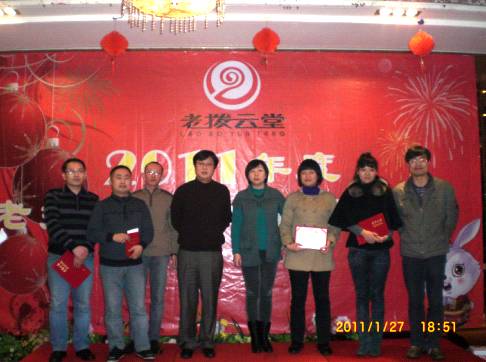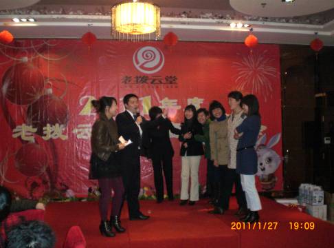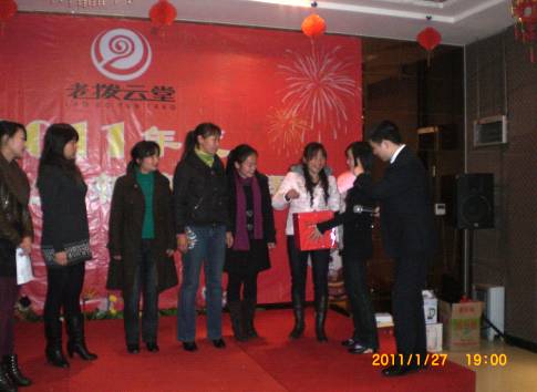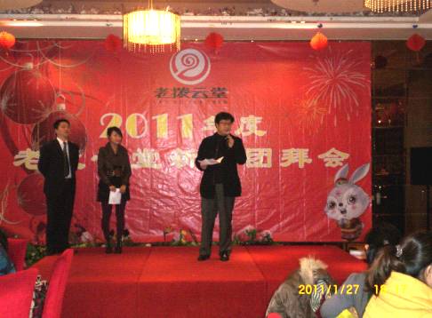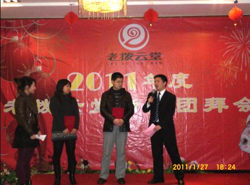 团拜会上,殷亦坚董事长代表公司领导班子,做了热情洋溢的新年致辞:首先向出席团拜会的公司全体同仁致以新春的祝福和诚挚的问候,其次总结回顾了过去一年各项工作的得与失,并对2011年的工作提出了新要求,最后共同祝愿在座的各位同仁、来宾、朋友,在新的一年里心想事成、万事如意,祝愿公司有个美好的明天!董事长致辞结束后,公司董事及其他领导为2010年在各项工作中表现优秀的团队及个人颁发荣誉证书和奖金,并与获奖人员合影留念。颁奖仪式结束后的抽奖活动和小游戏互动节目一个接一个的上演,将团拜会的热烈气氛推向高潮,老拨云堂2011年新春团拜会在这样欢乐祥和的气氛中圆满结束。