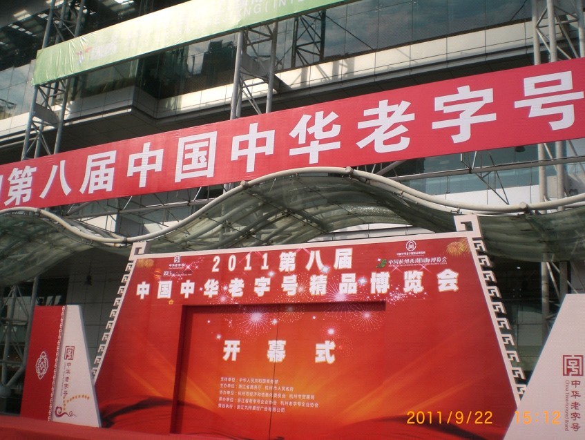 2011年第八届中国中华老字号精品博览会于9月22日--9月25日在浙江杭州和平国际会展中心举行。 本届博览会由浙江省商务厅和浙江省人民政府主办,中华老字号品牌委员会承办。本届博览会以老字号精品展示为主,以“百年流芳,民族瑰宝”为主题进行展示,我公司前往参展,22日参加了开幕式和高峰论坛,并向杭州百姓和外地游客展示我公司的品牌和文化。