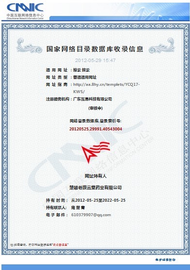 公司“拨云”商标的中文域名及通用网址顺利备案登记
