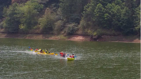 活动分二阶段进行,早8:30—12:00 安宁太平镇玉龙湾皮划艇基地学习皮划艇操作技术并实践竞技;中午12:30至秋麟山庄自助烧烤。玉龙湾皮划艇基地空气清新,景色宜人,大家相互拍照留影,在皮划艇竞技环节,还展开了水面“世纪大战”。中餐时,大家享受着自己动手带来的美味佳肴,心情格外愉悦。