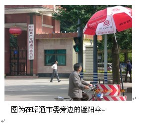 时下已进入夏季,天气炎热,近日,老拨云堂在昭通向主要街道的交通岗亭送上爱心遮阳伞。