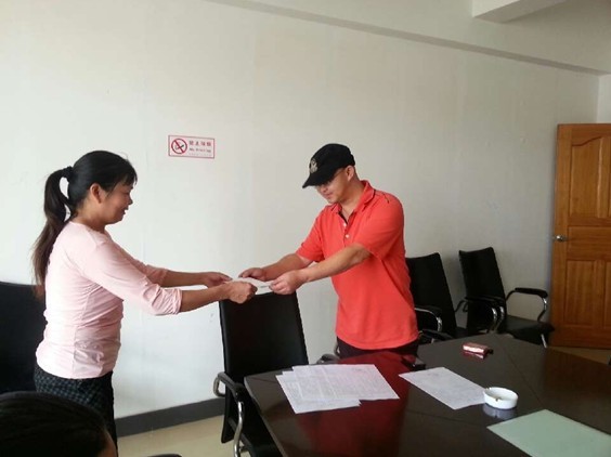 上图为公司党支部书记、公司副总经理向困难职工发放慰问金